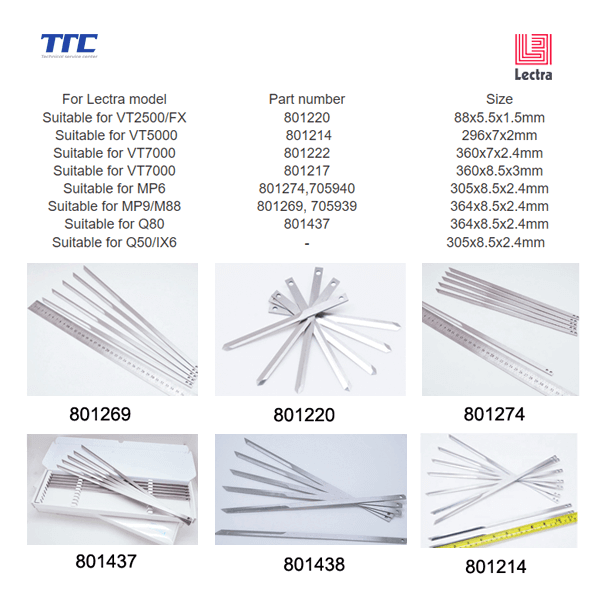 DANH MỤC & KÍCH THƯỚC DAO LECTRA TƯƠNG ỨNG THEO CÁC MODEL: