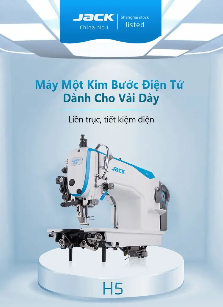 Máy 1 Kim Cào Bơi JACK H5 được thiết kế để may các vật liệu dày hơn (ví dụ như da, vật liệu bọc), được trang bị động cơ tiết kiệm năng lượng tích hợp trực tiếp vào đầu máy (hệ thống Truyền động Trực tiếp). Giải pháp này đảm bảo hoạt động yên tĩnh và tiêu thụ điện năng thấp. Máy còn có chức năng định vị kim. Vận chuyển kép (răng dưới và chân lăn trên) đảm bảo chuyển động hoàn hảo của lớp trên và lớp dưới của vật liệu ghim.