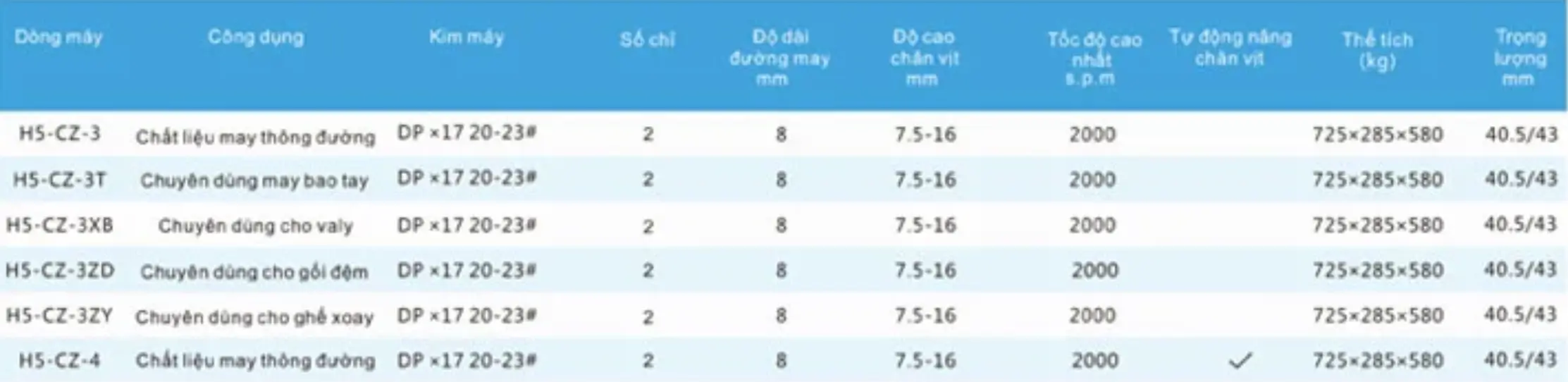 Top Feed, mô tơ 750W, cực bền cho chất liệu nặng, may 10 lớp da nhẹ trung bình cho kết quả tuyệt vời.