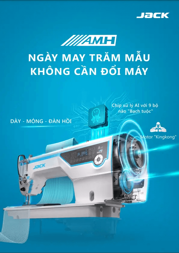 Cảm biến thông minh & tích hợp AI chop phép cảm nhận được sự thay đổi của vải theo thời gian thực, so sánh với 200,000 mẫu thông tin dữ liệu & AI tính toán 10,000 lần/giây và gửi tín hiệu điều khiển đến động cơ.